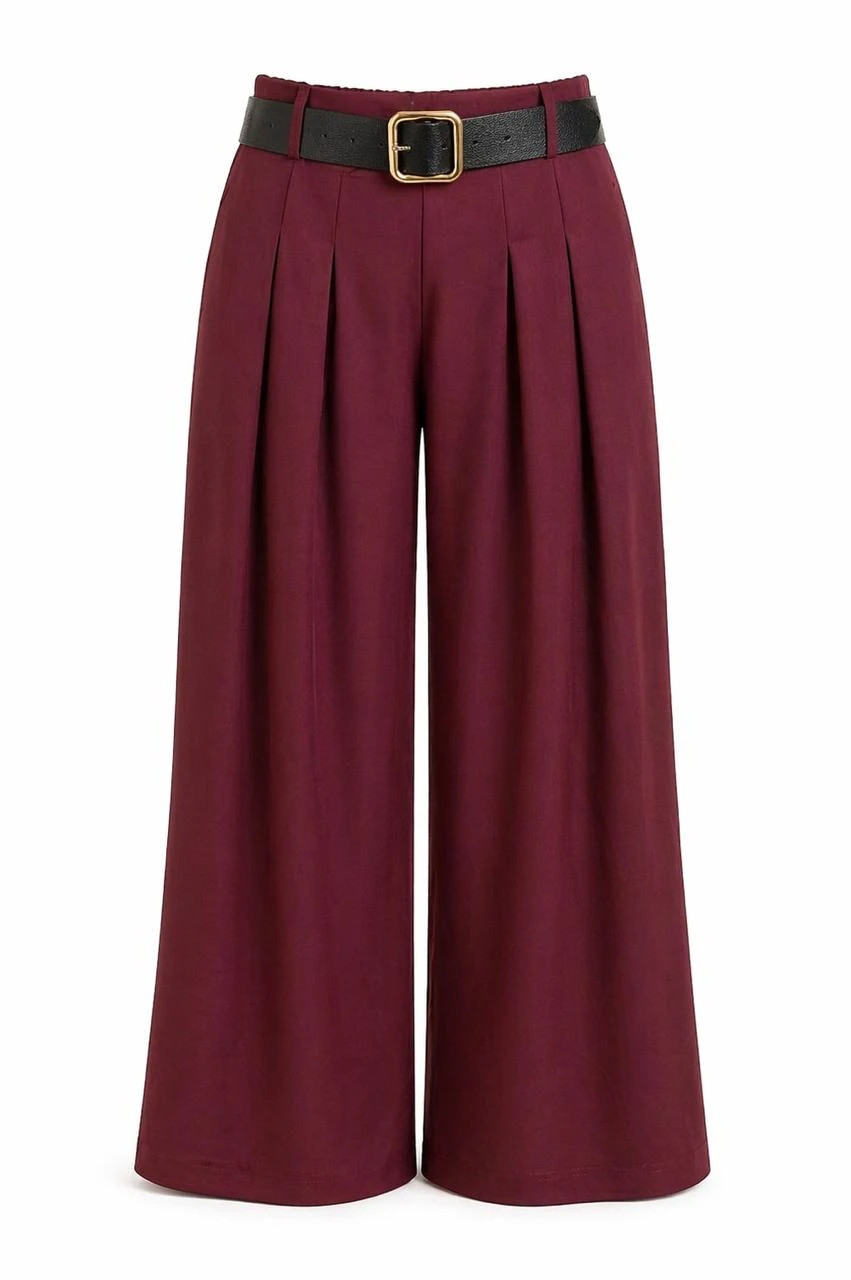 Belted Bordeaux Pants