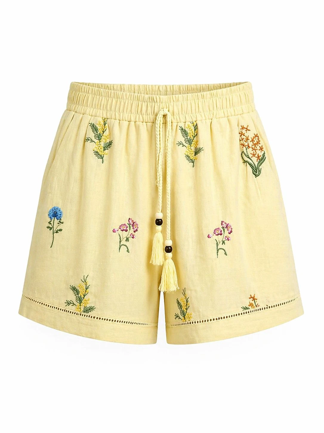 Floral Detailed Yellow Shorts