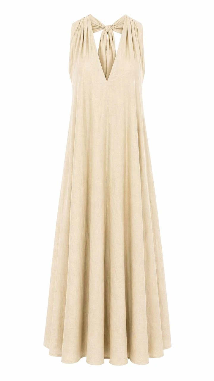 V-neck Beige Dress