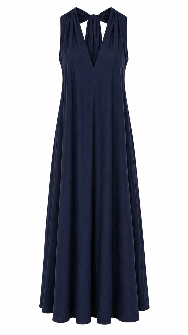 V-neck Navy Dress