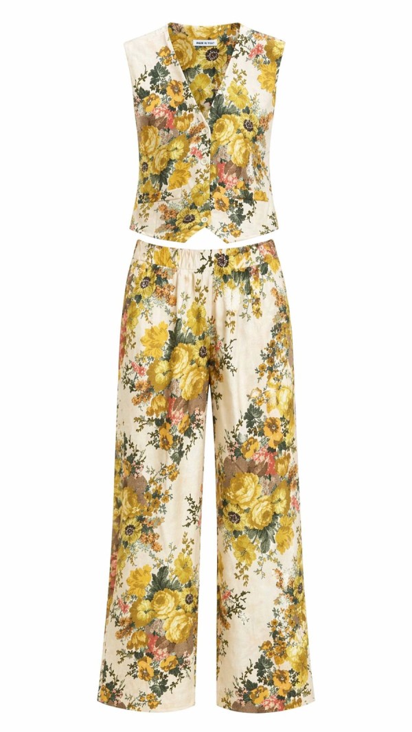 Yellow Floral Vest Set
