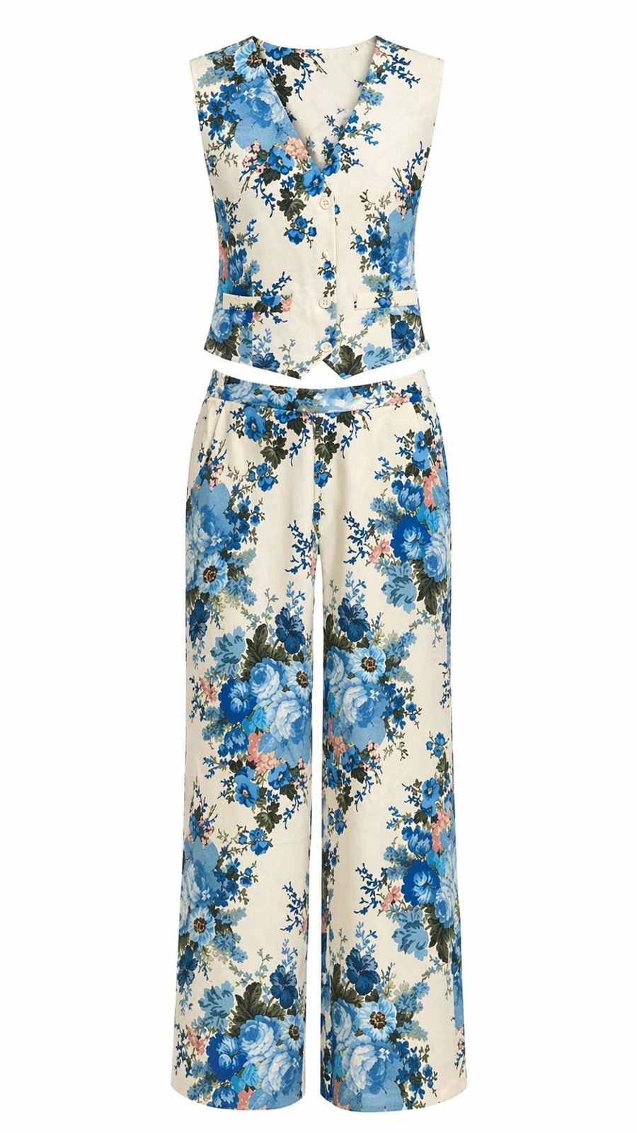 Blue Floral Vest Set