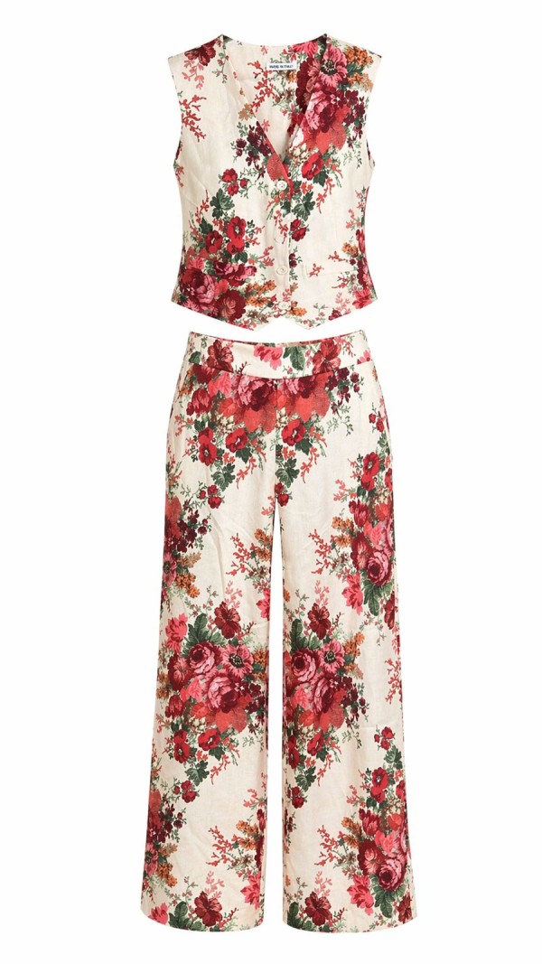 Red Floral Vest Set