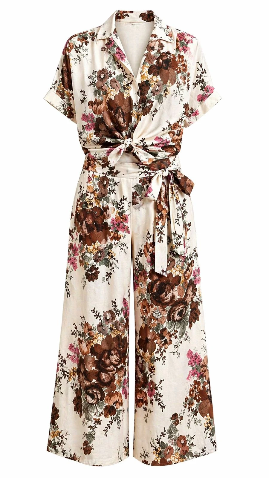 Brown Floral Shirt & Pants Set